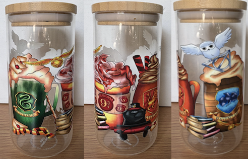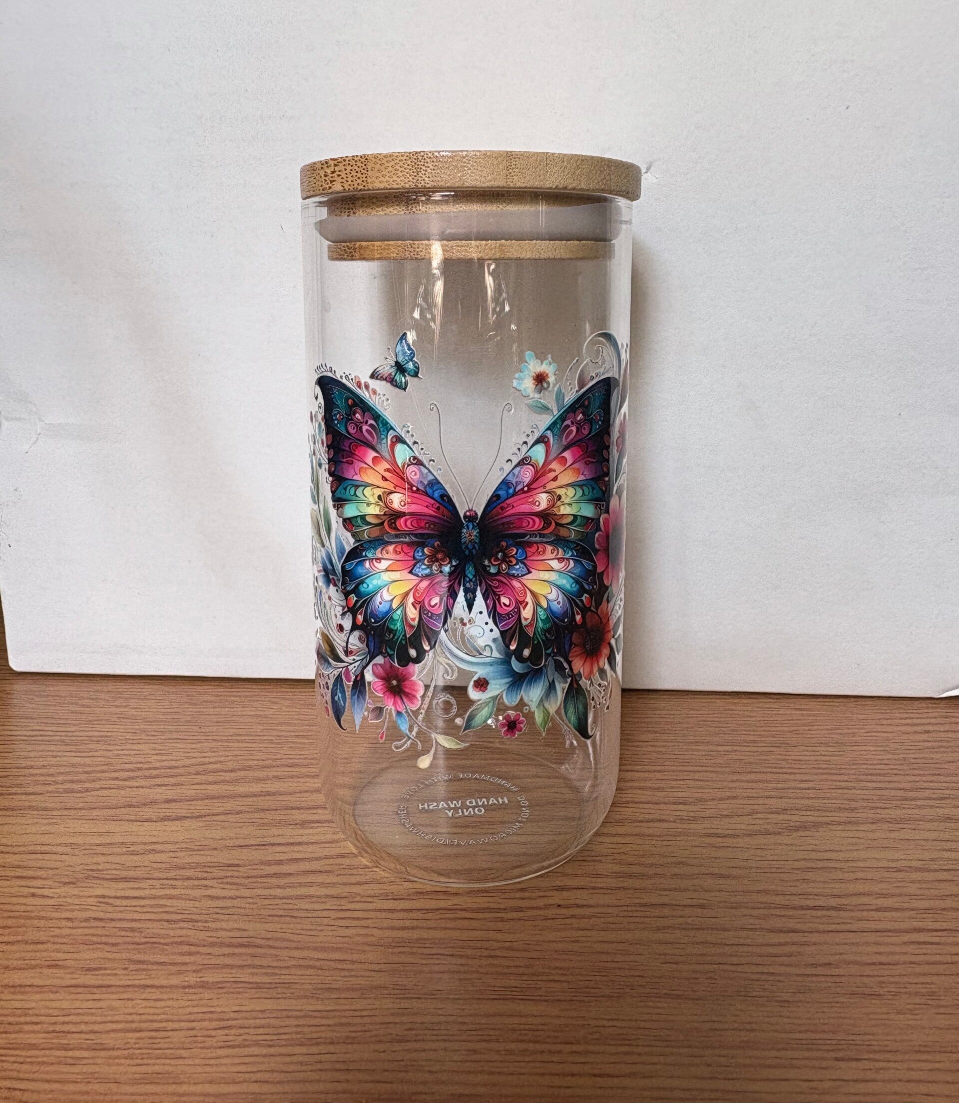 Handmade can glass with bamboo lid and glass straw. Perfect gift for someone special.